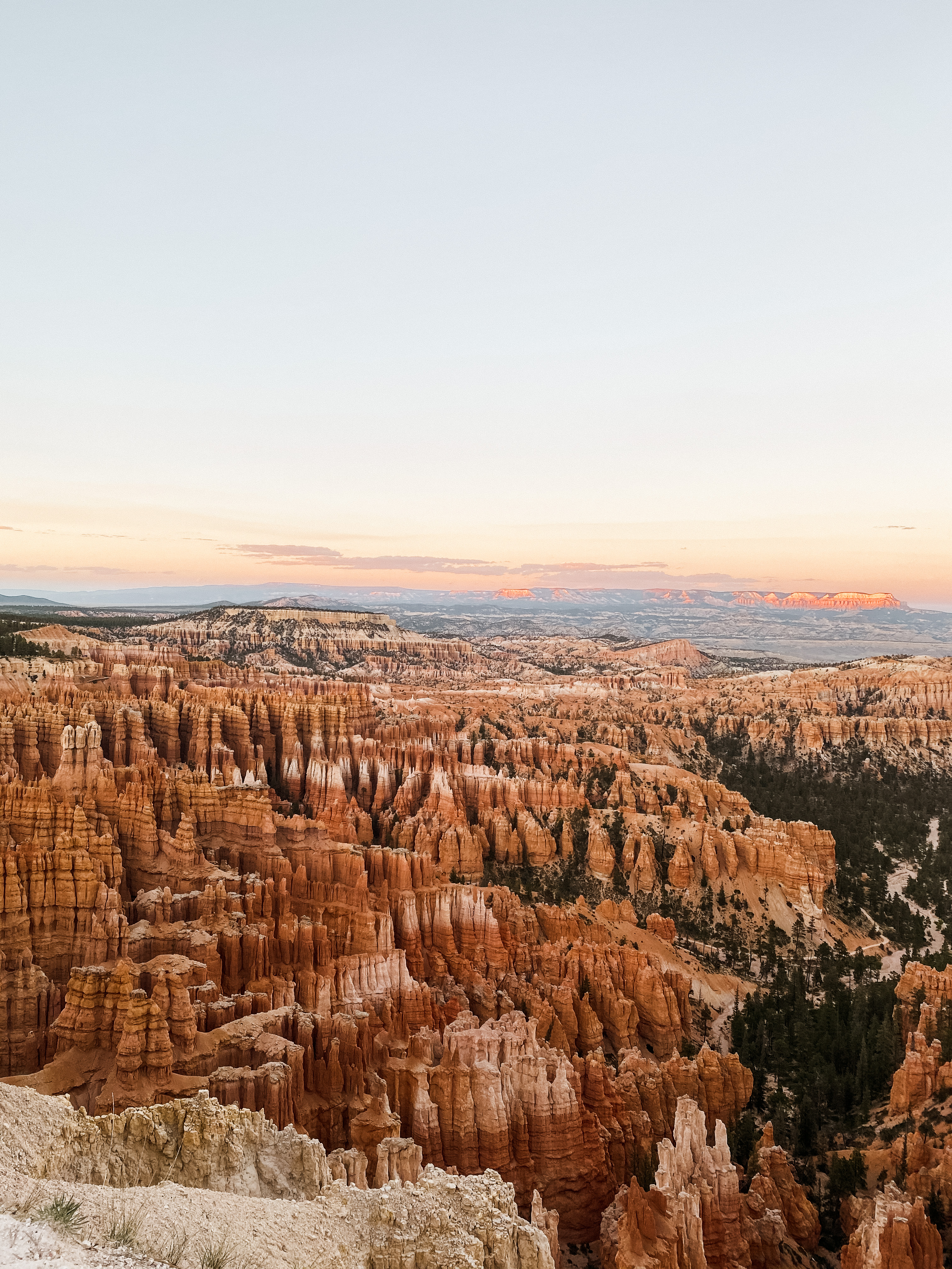 Another thing I highly recommend doing is catching a sunset and a sunrise at Bryce Canyon. After we got done hiking we hung around and watched the sunset and it did not disappoint. But the real beauty is waking up early to catch the sunrise. Most people view sunrise at Sunrise Point, but I would recommend checking sunrise out at Inspiration Point. It is way less crowded and has some amazing views of the sun lighting up the canyons. It is truly unbelievable!