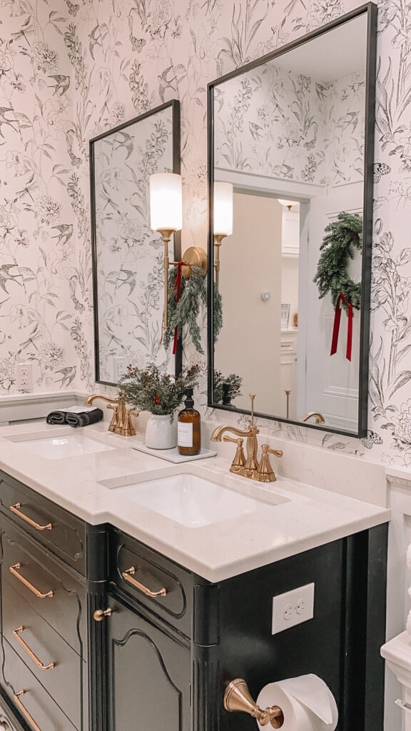 One of my favorite parts of the home is the cozy outdoor area. Not only do they have a cute sitting area with twinkle lights and a fire pit, but they also have a stunning mural. If you look closely you will notice that the mural matches the bathroom wallpaper. Y’all I mean EVERY single detail! We were truly blown away, it is a must stay for sure!